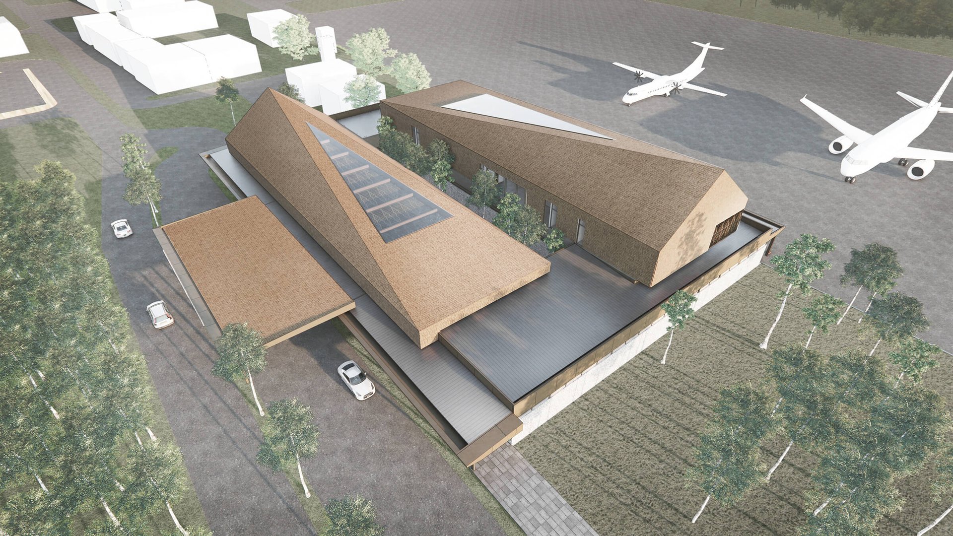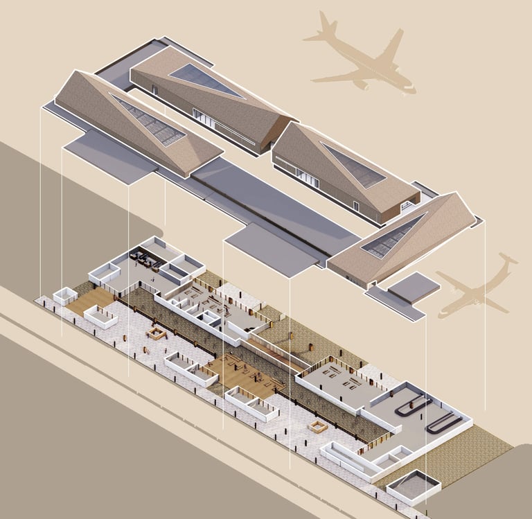 Betang, a local traditional house is tranformed into the form of the roofline. Planting the betangs on the site considered as the early design approach. These massive forms creates different zones while allowing sunlight diverse into the program below using a semi permeable ceiling patterns which inspired by traditional crafts.