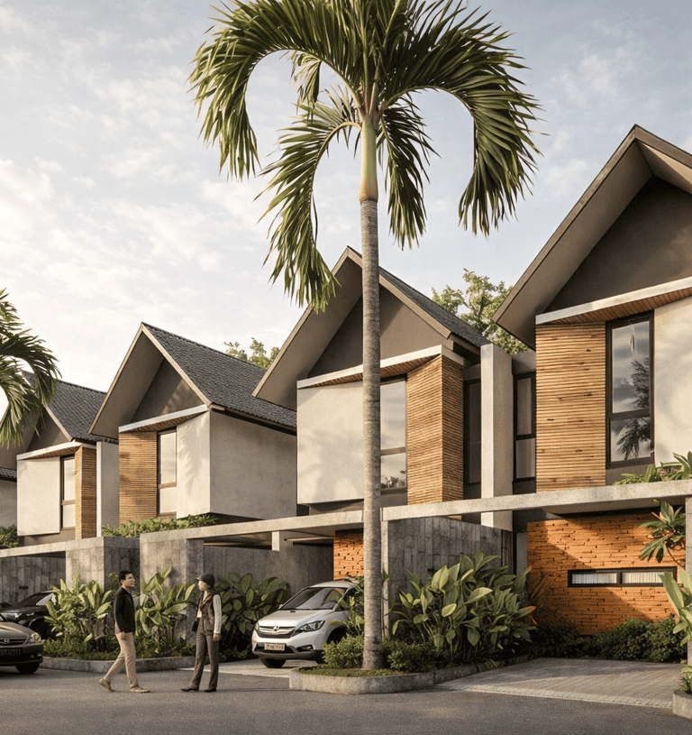 The design intent is to maximize the sellable area while maintaining an eco-resort feel. By creating gaps between clusters, we tried to maintain the original rice field condition. Celebrating green space on a micro and macro scale, the environment will have a unique Balinese resort ambiance. The Residence units are inspired by traditional Balinese houses which consist of three layers of proportion and are clad with the local source material.