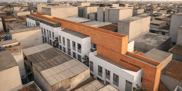 Glodok is considered as the biggest Chinatown in Indonesia and one of the most highly dense areas of Jakarta since colonial times. The project resides on an irregular narrow lot of land between the dense of urban fabric, surrounded by residential, commercial programs and a busy day market at the entrance of the lot. How do we create an urban volume and release the stress of density at the same time?